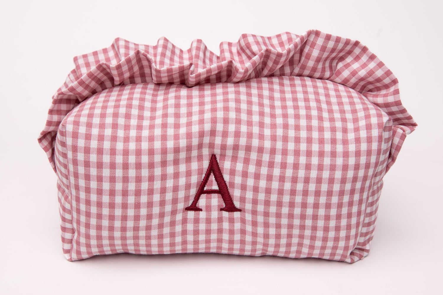 Neceser de tejido vichy con inicial bordada, clásicos, dulces y muy especiales....