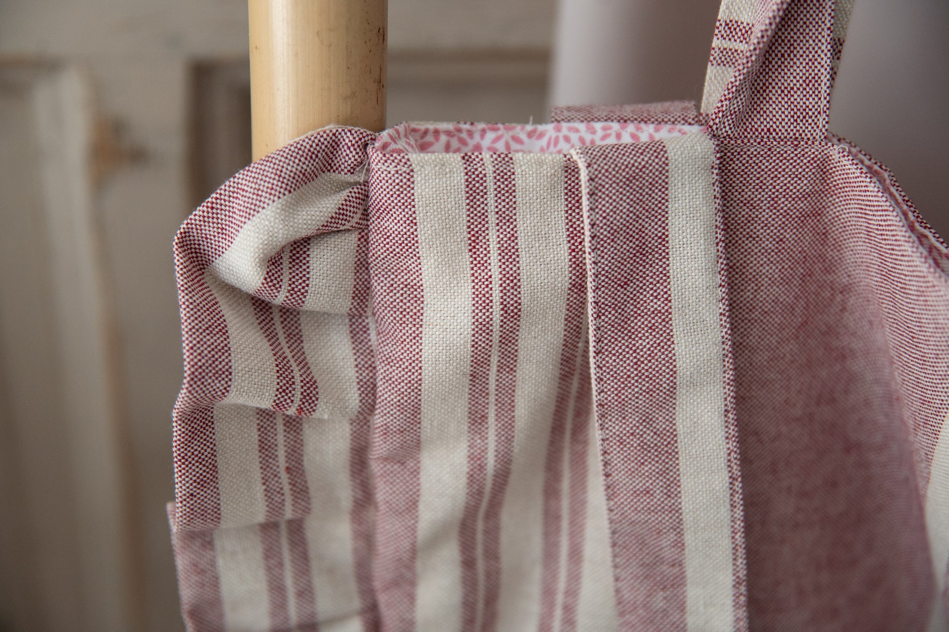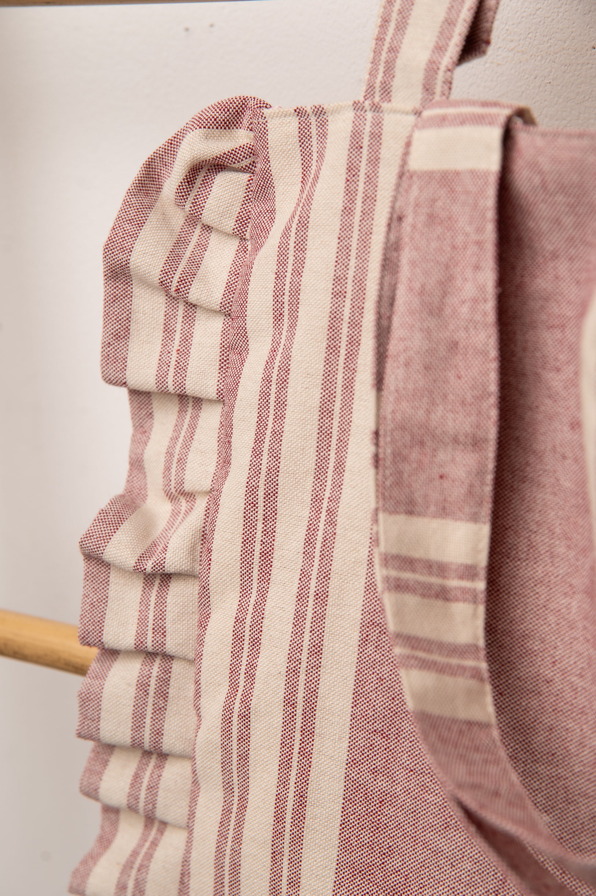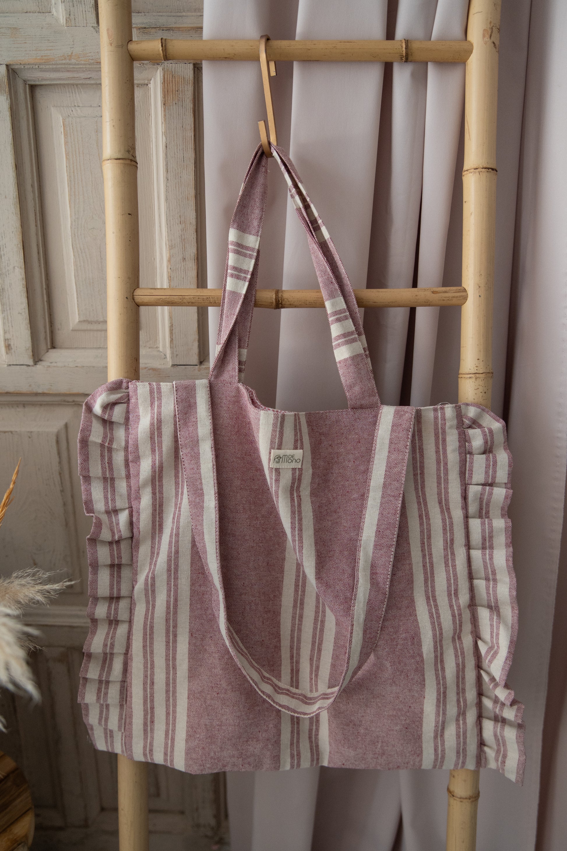 Nuestra bolsa más coqueta y versátil. Confeccionada en tejido de algodón con rayas en tono rosa empolvado y crudo, esta bolsa es perfecta para el día a día.