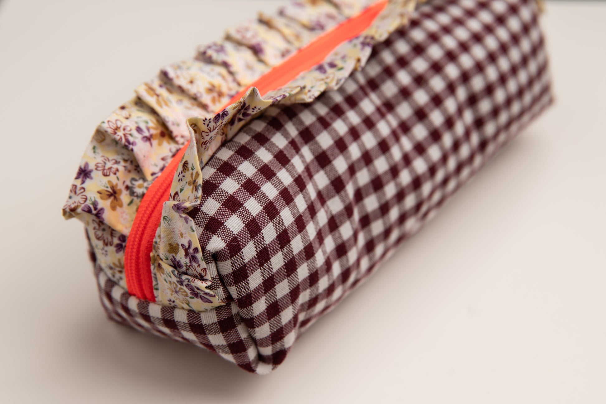 Intenso y lleno de personalidad. El vichy granate se enciende con una cremallera naranja neón que le da un toque vibrante. Un accesorio que transmite fuerza, creatividad y mucho carácter.
