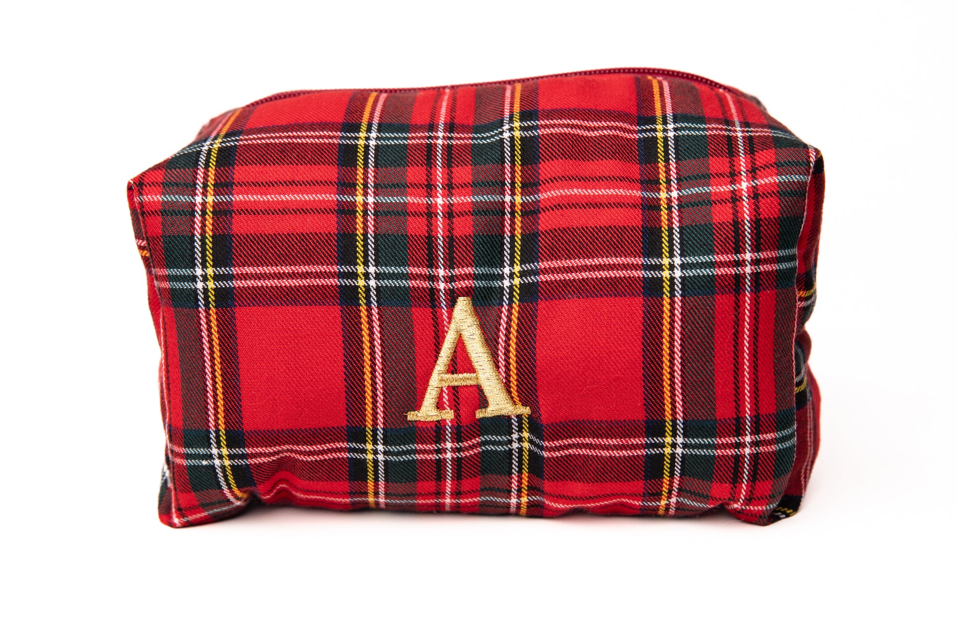 Este neceser de tamaño mediano es el accesorio ideal para llevar tus esenciales de belleza y viaje con estilo. Su diseño clásico y sofisticado, en tejido estampado tartán rojo, lo convierte en un complemento imprescindible para el día a día. Su estética elegante y atemporal lo hace perfecto para cualquier ocasión.