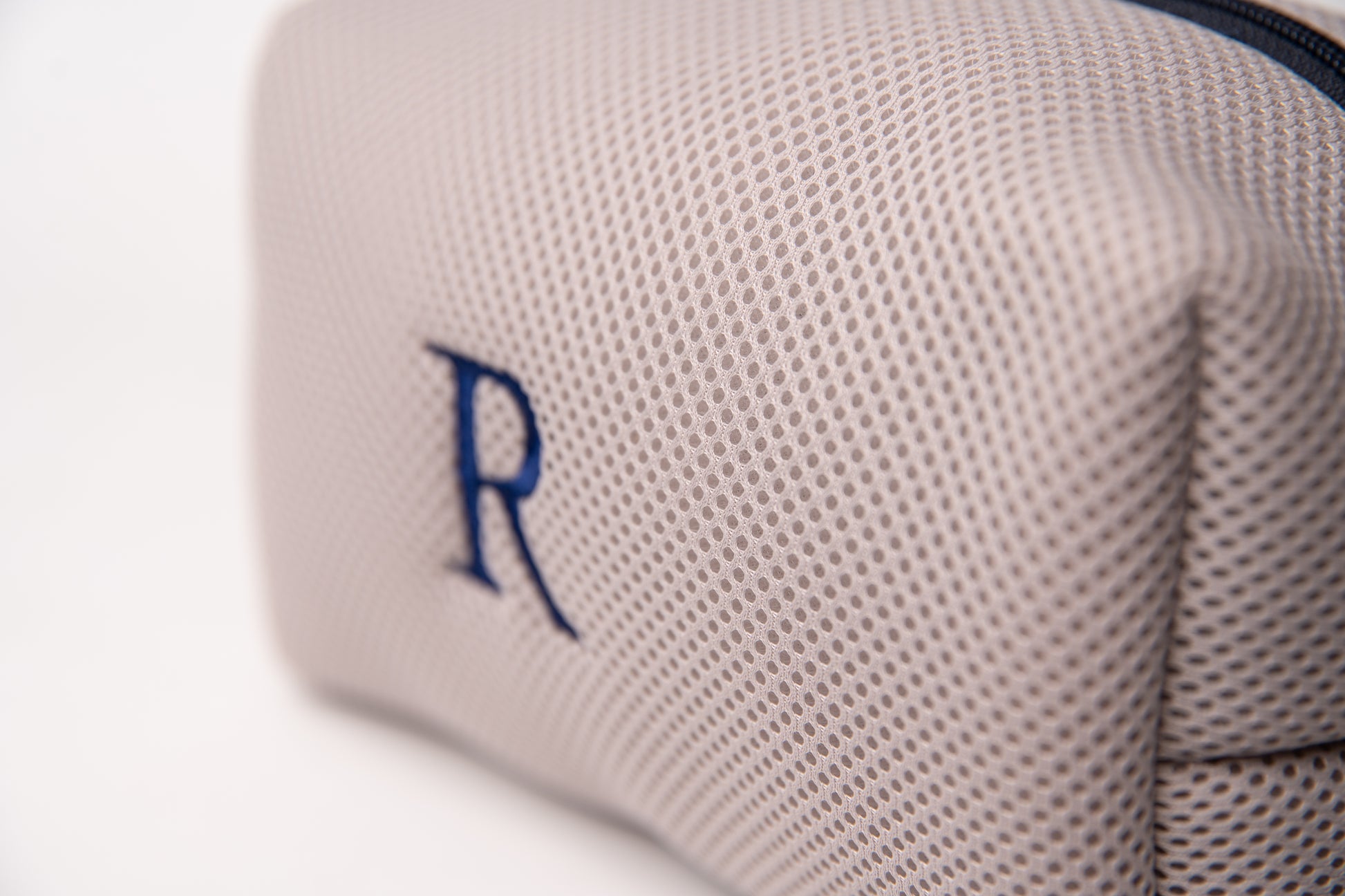 - Personalizable con una inicial bordada en hilo azul, a juego con la cremallera, para un toque exclusivo y personal.